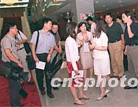 在北京的中外媒體記者三日下午在中國(guó)外經(jīng)貿(mào)部談判大樓采訪“中日貿(mào)易磨擦問(wèn)題正式磋商”。中新社記者 鄒憲 攝