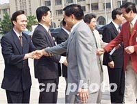 組圖:北京奧申委代表團(tuán)啟程赴莫斯科 2001年07月07日 20:29 ![]() 以北京奧申委主席、北京市市長劉淇為團(tuán)長的北京奧申委代表團(tuán)七日乘專機(jī)離京赴莫斯科,出席國際奧委會在莫斯科舉行的第112次全會。圖為北京市和國家體育總局有關(guān)人士到首都國際機(jī)場為代表團(tuán)送行。中新社記者 錢興強(qiáng) 攝 ![]() 北京奧申委代表團(tuán)七日乘專機(jī)赴莫斯科,出席國際奧委會在莫斯科舉行的第112次全會。圖為北京奧申委主席、北京市市長劉淇(前右)與國家體育總局局長袁偉民(左)離行前在首都國際機(jī)場。中新社記者 錢興強(qiáng) 攝