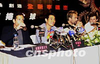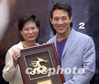 組圖:李連杰出席電影《猛龍戰(zhàn)警》亞洲區(qū)記者會 2001年07月07日 22:33 ![]() 國際武打影星李連杰7日在香港出席動作電影《猛龍戰(zhàn)警》亞洲區(qū)記者招待會。《猛龍戰(zhàn)警》是他第三部荷李活制作的電影,該片香港區(qū)發(fā)行商特別在記者會上向李連杰致送紀念品。中新社傳真鄧慶樂攝 ![]() 荷李活電影《猛龍戰(zhàn)警》7日在香港舉行亞洲區(qū)記者招待會。影星李連杰、監(jiān)制及編劇洛比桑(右二)、及另一監(jiān)制史提芬查士文(左一)出席在記者會上。中新社傳真鄧慶樂攝