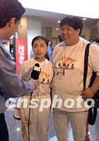 中國著名運(yùn)動員劉璇、黃志紅接受記者采訪