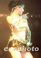 在北京申奧成功之際,2001CCTV-MTV音樂盛典,十五日在北京舉辦歡慶申奧成功,評選歌手現(xiàn)場投票活動(dòng)。圖為年輕歌手身穿前衛(wèi)時(shí)裝載歌載舞盡興表演。中新社記者 錢興強(qiáng) 攝