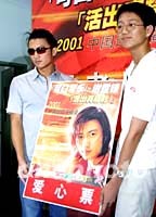 多圖:謝霆鋒巡回演唱風(fēng)下周刮到上海 2001年07月20日 15:47 ![]() 香港歌手謝霆鋒七月十九日在上海為其演唱會(huì)做前期推廣。“可口可樂謝霆鋒活出真精彩2001中國(guó)巡回演唱會(huì)”將于七月二十八日在可容納八萬人的上海體育場(chǎng)舉行。謝霆鋒希望屆時(shí)更多的歌迷能了解他、接近他。中新社記者 潘索菲 攝 ![]() 新天王謝霆鋒十九日在上海向上海慈善基金會(huì)慈善助學(xué)的受助學(xué)生代表贈(zèng)送本月二十八日在此間舉行的“可口可樂謝霆鋒活出真精彩演唱會(huì)”的門票。中新社記者 潘索菲 攝
