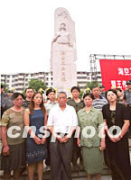 圖文:“?招l(wèi)士”王偉的塑像在浙江湖州落成 2001年08月02日 06:19 ![]() 中國(guó)“?招l(wèi)士”王偉塑像落成典禮八月一日在浙江省湖州市鳳凰公園廣場(chǎng)舉行,由花崗巖制作的王偉塑像高10米、寬2.2米、厚2.3米、重約80噸,采用的是南京藝術(shù)學(xué)院青年教師、著名雕塑家李廣玉構(gòu)思的設(shè)計(jì)方案。中新社圖 張全躍 攝 ![]() 中國(guó)“?招l(wèi)士”王偉塑像落成典禮八月一日在浙江省湖州市鳳凰公園廣場(chǎng)舉行,王偉父母王明、王月琴(中)、妻子阮國(guó)琴(右)、姐姐(右四)等親屬與近千名各界群眾和當(dāng)?shù)伛v軍官兵參加了儀式并合影留念。中新社圖 張全躍 攝