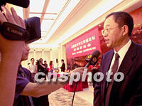 圖文:“首屆世界華文傳媒論壇”九月南京開幕 2001年08月02日 19:49 ![]() 中國(guó)新聞社二日在北京人民大會(huì)堂舉行首屆世界華文傳媒論壇新聞發(fā)布會(huì),社長(zhǎng)劉澤彭接受新聞界采訪,準(zhǔn)備迎接全球華文新聞界的盛會(huì)。中新社記者 賈國(guó)榮 攝 ![]() 中國(guó)新聞社與南京市政府二日在北京人民大會(huì)堂舉行新聞發(fā)布會(huì),海外華文媒體的“峰會(huì)”——首屆世界華文傳媒論壇今秋九月將在南京召開,由江蘇波司登股份有限公司獨(dú)家協(xié)辦。中新社記者 賈國(guó)榮 攝