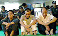 圖:中國首宗偽造二十元版人民幣案開庭審理 2001年08月03日 20:53 ![]() 中國首宗偽造二十元版人民幣案三日在廣東省汕尾市中級(jí)人民法院開庭審理,八名被告共印制九九年版二十元人民幣一千九百三十萬元,為中國首例。