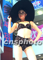 ![]() 身著“神采飛揚(yáng)”內(nèi)衣的模特十日在北京東安市場(chǎng)向眾人展示。黑色變形斑馬紋圖案與透明網(wǎng)紗組合出傳統(tǒng)與現(xiàn)代的平衡,顯得協(xié)調(diào)而優(yōu)雅。中新社記者 史利 攝