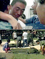 組圖:在菲律賓遇害的兩名中國人質(zhì) 2001年08月21日 11:26 ![]() 遭菲律賓反政府武裝綁架的兩名中國人質(zhì)張忠強、薛興日前在菲律賓官方的營救行動中遇害。薛興是八月十二日帶現(xiàn)金前往營救時遭綁架的。 ![]() 廣受關注的中國人質(zhì)張忠強、薛興兩人日前在菲律賓官方與綁匪激戰(zhàn)中遇害,而王勝利獲救,張忠義目前下落不明。菲律賓總統(tǒng)對兩名遇害中國人質(zhì)表示遺憾。