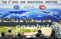 ![]() 二十九日在上海開幕的第八屆APEC中小企業(yè)部長會議上,與會官員和代表紛紛關(guān)注上海的媒體信息。中新社記者 潘索菲 攝