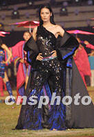 ![]() 大運(yùn)會閉幕式三十日晚在北京工人體育場進(jìn)行最后的彩排,中國名模于娜出演《歷代服飾》。中新社圖 劉殊瑾 攝