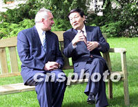 ![]() 正在愛爾蘭訪問的中國總理朱镕基,九月三日在下榻的國賓館與愛總理埃亨舉行會談后,共同會見記者并回答提問。中新社記者 孟慶雷 攝