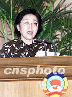 ![]() 全國政協(xié)人口資源環(huán)境委員會副主任江澤慧六日在北京舉行的“21世紀論壇--綠色與環(huán)保2001會議”閉幕會上致辭,倡議人們攜手共建人類綠色文明。中新社記者 滿會喬 攝
