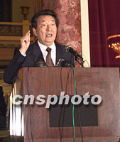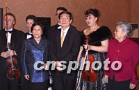 ![]() 正在俄羅斯訪問的中國(guó)總理朱镕基和夫人勞安,九月九日晚在中國(guó)駐俄羅斯大使館與俄羅斯演員合影留念。中新社記者 孟慶雷 攝