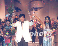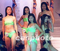 組圖:新絲路模特大賽北京賽區(qū)決賽 2001年09月12日 12:20 ![]() 2001新絲路中國(guó)模特大賽可采杯北京賽區(qū)決賽十一日在北京舉行。圖為參賽選手進(jìn)行泳裝展示。中新社記者 錢興強(qiáng) 攝 ![]() 2001新絲路中國(guó)模特大賽可賽杯北京分賽區(qū)決賽,十一日在北京舉行,男選手周雙健和女選手賈妮妮分別榮獲大賽冠軍。中新社記者 錢興強(qiáng) 攝