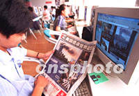 組圖:北京大學(xué)生全面關(guān)注美國“爆炸事件” 2001年09月12日 16:21 ![]() 十一日發(fā)生的美國受襲“爆炸事件”引起北京媒體關(guān)注,十二日一家媒體特意加印號外,北大學(xué)生午休時間紛紛搶購。中新社圖 張宇 攝 ![]() 十一日發(fā)生的美國受襲“爆炸事件”引起北京大學(xué)生關(guān)注,十二日中午北京大學(xué)附近近千臺電腦的網(wǎng)吧內(nèi)座無虛席,一名學(xué)生邊瀏覽網(wǎng)頁,邊翻閱報刊,全面關(guān)注此次“爆炸事件”。中新社圖 張宇 攝