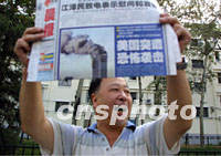 圖文:北京各大報紙以突出版面報道美大爆炸事件 2001年09月12日 16:36 ![]() 十一日發(fā)生的美國受襲“爆炸事件”引起了北京媒體的全面關(guān)注,十二日清晨報攤攤主高舉報紙頭版向路人吆喝。中新社記者 鄭萍萍 攝