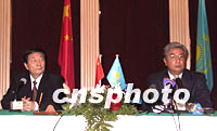 圖文:朱镕基總理結束訪俄首次踏訪哈薩克斯坦 2001年09月12日 23:00 ![]() 正在哈薩克斯坦訪問的中國總理朱镕基九月十二日在阿斯塔納與哈總理托卡耶夫會見記者時表示,世界各國應共同努力反對和制止一切恐怖主義和暴力活動。中新社記者 孟慶雷 攝 ![]() 首次訪問哈薩克斯坦共和國的中國總理朱镕基,九月十二日在哈首都阿斯塔納與哈總理托卡耶夫共同簽署中哈聯(lián)合公報。中新社記者 孟慶雷 攝