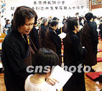 圖文:香港佛聯(lián)舉行法會(huì)超度“九一一”罹難者 2001年09月16日 01:09 ![]() 香港佛教聯(lián)合會(huì)15日下午為美國「九一一事件」罹難者舉辦的超度法會(huì)上,一對(duì)母子一起誦讀《心經(jīng)》,祈祝世界和平。中新社圖 董會(huì)峰 攝