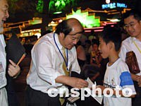 圖:貝聿愷為南京小市民簽名留念 2001年09月18日 14:10 ![]() 出席華商會(huì)的美國(guó)美中經(jīng)貿(mào)促進(jìn)會(huì)會(huì)長(zhǎng)貝聿愷十七日晚在南京著名景區(qū)秦淮河畔游覽時(shí),為熱情的南京小市民簽名。中新社記者 鄭萍萍 攝 |