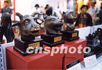 組圖:2001年中國(guó)國(guó)際旅游博覽會(huì)開(kāi)幕 2001年09月21日 11:07 ![]() 2001年中國(guó)國(guó)際旅游博覽會(huì)20日開(kāi)幕。這是新世紀(jì)中國(guó)舉辦的首次國(guó)際性大型旅游商品博覽交易會(huì)。會(huì)展設(shè)有標(biāo)準(zhǔn)展位1000余個(gè),參展商來(lái)自全國(guó)22個(gè)省市和美國(guó)、西班牙、肯尼亞、巴基斯坦等國(guó)。圖為開(kāi)幕式上精彩的文藝演出。中新社圖 吳芳 攝 ![]() 2001年中國(guó)(蕪湖)國(guó)際旅游博覽會(huì)20日開(kāi)幕,在展銷(xiāo)柜臺(tái)上,展示的圓明園三件珍寶虎首、牛首、猴首引人注目。中新社圖 吳芳 攝