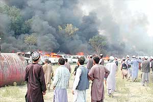 圖文:阿富汗反美大示威中有12名警察受傷 2001年09月27日 11:10 ![]() 示威者圍觀美國(guó)大使館內(nèi)狂燒的車(chē)子。路透社 圖 中新網(wǎng)香港9月27日消息:幾千名阿富汗示威者昨天闖入美國(guó)駐阿富汗大使館,放火焚燒遭丟棄的汽車(chē),火勢(shì)波及大使館的外圍建筑,但主樓并未受破壞。 塔利班士兵同大使館內(nèi)外暴亂的示威者發(fā)生沖突,消防員最終把火勢(shì)控制住?Σ紶柧焓啄X尤努斯說(shuō),12名警察在設(shè)法控制暴亂時(shí)受傷。他說(shuō):“我們盡力避免這樣的事情發(fā)生,但示威者的人數(shù)使我們不可能成功。他們有幾千人。” 38歲的示威者烏拉說(shuō),示威的目的是向美國(guó)發(fā)出信號(hào)。“我們干得好!边@名店主說(shuō),“美國(guó)要燒掉我們的國(guó)家,所以我們焚燒他們的大使館。” 美國(guó)駐阿富汗大使館自1989年起就無(wú)人駐守,只保留了一些阿富汗雇員負(fù)責(zé)維修等有限的工作。據(jù)悉,這次示威是美國(guó)遭襲以來(lái)喀布爾發(fā)生的最大規(guī)模反美事件。 |