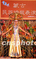 組圖:"內(nèi)蒙古時(shí)裝展"中秋國慶期間在港舉行 2001年10月04日 09:29 ![]() 內(nèi)蒙古民族時(shí)裝表演隊(duì),中秋國慶期間在香港多個(gè)大型購物商場表演,巡回展示內(nèi)蒙古少數(shù)民族多姿多彩的服飾文化。中新社圖 洪少葵 攝 ![]() 香港大型購物商場“青衣城”,中秋國慶假期舉辦“蒙古民族時(shí)裝表演”,瑰麗多彩的蒙古民族服飾,令顧客耳目一新。中新社圖 洪少葵 攝
