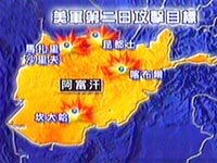 圖文:美英聯(lián)軍對(duì)阿富汗目標(biāo)實(shí)施第二輪空中打擊 2001年10月09日 00:33 ![]() 阿富汗當(dāng)?shù)貢r(shí)間八日二十時(shí)二十八分左右,美英開始對(duì)阿富汗進(jìn)行新一輪打擊,圖為美英新二輪打擊目標(biāo)的示意圖。 ![]() 阿富汗當(dāng)?shù)貢r(shí)間八日二十時(shí)二十八分左右,美英開始對(duì)阿富汗進(jìn)行新一輪打擊,圖為導(dǎo)彈擊中目標(biāo)的場(chǎng)面。
