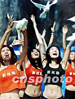 圖文:新絲路模特大賽從明年起永久定址海南三亞 2001年10月12日 14:33 ![]() 2001新絲路中國(guó)模特大賽日前在海南三亞舉行,來自中國(guó)各地的八十一名男女模特選手將參加在這里總決賽冠、亞、季軍的角逐。圖為參賽選手手捧和平鴿祈愿世界和平。中新社記者 錢興強(qiáng) 攝