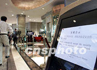 圖:APEC前夕上海重要飯店實行安檢 2001年10月13日 14:52 ![]() 亞太經(jīng)合組織高峰會開幕在即,上海一些參與會議接待的重要飯店開始實行安全檢查,以確保安全。中新社記者 毛建軍 攝 |
