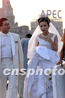 圖:APEC開(kāi)幕前夕上海掀起結(jié)婚潮 2001年10月13日 14:53 ![]() 一對(duì)年輕夫婦十三日在上海濱江路拍攝結(jié)婚照,背景的高樓上豎立著APEC標(biāo)記。亞太經(jīng)合組織高峰會(huì)開(kāi)幕在即,上海迎來(lái)青年人的結(jié)婚高峰。中新社記者 毛建軍 攝 |