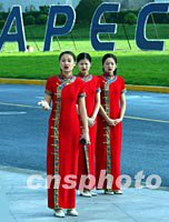 圖:APEC的旗袍禮儀小姐 2001年10月15日 14:59 ![]() 為上海十月APEC會(huì)議服務(wù)的禮儀小姐,身穿紅色中式滾花邊旗袍,富有中國(guó)南方女性溫柔端莊的氣質(zhì)。中新社記者 賈國(guó)榮 攝 |