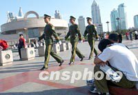 圖:上海博物館廣場警隊(duì)巡邏 2001年10月16日 11:36 ![]() 在上海博物館廣場,一隊(duì)武裝警察上海博物館巡邏而過,路旁一對(duì)小情侶正在熱戀之中。APEC會(huì)議的嘉賓十月中旬將在這里參觀中國文物。中新社記者 賈國榮 攝 |