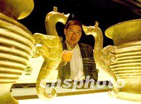 圖:為APEC展示青銅文物 2001年10月16日 15:43 ![]() 上海博物館周志聰副研究員準(zhǔn)備好為十月APEC會議的嘉賓介紹中國文物,這對兩千多年前在安徽鑄造的龍手青銅器,借鑒了海馬的形象。中新社記者 賈國榮 攝 |