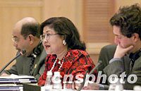 圖文:馬來(lái)西亞官員稱美國(guó)靠武力無(wú)法解決恐怖主義 2001年10月17日 18:44 ![]() 10月17日,2001年亞太經(jīng)合組織(APEC)部長(zhǎng)級(jí)會(huì)議在上海國(guó)際會(huì)議中心開(kāi)幕。這是馬來(lái)西亞貿(mào)工部長(zhǎng)拉菲達(dá)·阿齊茲在會(huì)上發(fā)言。中新社圖
