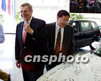 圖:通用汽車董事長史密斯比APEC其他代表多一份自豪 2001年10月17日 18:46 ![]() 上海APEC期間,有八百輛別克汽車作為禮賓及會務(wù)用車,為此美國通用汽車公司董事長史密斯比其他代表多一份自豪。圖為十七日抵達(dá)上海的史密斯在親臨上海通用汽車公司時說,當(dāng)年他第一個在上海首輛別克汽車上簽名。中新社記者 潘索菲 攝 |