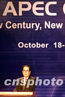 圖:錢其琛出席APEC CEO峰會(huì)開幕式并致辭 2001年10月18日 15:08 ![]() 亞太經(jīng)合組織工商領(lǐng)導(dǎo)人峰會(huì)(APEC CEO)十八日下午在上海開幕,中國國務(wù)院副總理錢其琛出席開幕式并致辭。中新社記者 毛建軍 攝 |