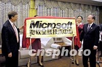 ![]() 十月十八日上海市市長徐匡迪與微軟公司主席比爾·蓋茨為新成立的微軟全球技術(shù)中心揭牌。同時(shí),上海市政府與微軟公司還舉行“共同促進(jìn)上海軟件產(chǎn)業(yè)發(fā)展諒解備忘錄”簽字儀式。中新社記者 潘索菲 攝