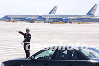 圖:浦東機場的“空軍一號” 2001年10月20日 11:03 ![]() 一名警察在上海浦東機場指揮車隊,他的身后是美國“空軍一號”專機。中新社圖 劉殊瑾 攝 |