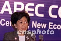 圖:中國證監(jiān)會副主席在APEC的CEO峰會發(fā)表演講 2001年10月20日 15:08 ![]() 中國證監(jiān)會副主席史美倫二十日在上海舉行的亞太經(jīng)合組織工商領(lǐng)導(dǎo)人峰會分組會上發(fā)表演講,談亞洲的資本市場及新經(jīng)濟的資本來源。中新社記者 毛建軍 攝 |