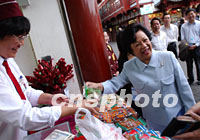 圖:董建華夫人選購(gòu)上海小吃 2001年10月20日 18:55 ![]() 出席APEC會(huì)議的經(jīng)濟(jì)體領(lǐng)導(dǎo)人配偶二十日在上海豫園游覽,香港特區(qū)行政長(zhǎng)官董建華夫人董趙洪娉抽空選購(gòu)上海小吃鴨肝。中新社記者 王瑤 攝 |