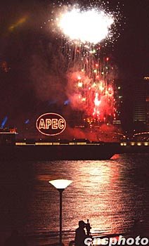 圖:上海浦江APEC煙火之夜 2001年10月20日 23:02 ![]() 上海APEC峰會之夜煙火如花。中新社記者 賈國榮 攝