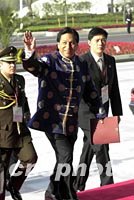 10月21日上午,出席2001年亞太經(jīng)合組織領(lǐng)導(dǎo)人非正式會(huì)議的文萊蘇丹博爾基亞抵達(dá)上?萍拣^。中新社圖