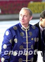 10月21日上午,出席2001年亞太經(jīng)合組織領(lǐng)導(dǎo)人非正式會(huì)議的俄羅斯總統(tǒng)普京抵達(dá)上?萍拣^。中新社圖