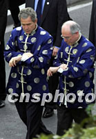 圖:霍華德與布什不約而同看時間 2001年10月21日 17:43 ![]() 10月21日,出席亞太經合組織領導人非正式會議的澳大利亞總理霍華德與美國總統(tǒng)布什不約而同看時間。中新社圖 |