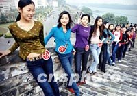 組圖:電視模特大賽在南京舉行 2001年10月30日 11:26 ![]() 一班模特十月底在南京古城墻上準(zhǔn)備拍攝外景,她們參加由中央電視臺舉辦的“通靈翠鉆”杯模特大賽江浙滬湘賽區(qū)初賽,入圍的40名選手在南京決賽后將赴北京參加全國總決賽。中新社圖 劉小楚 攝 ![]() 40名從江蘇、浙江、上海、湖南200名參賽選手中初評出來的模特,十月底在南京準(zhǔn)備參加決賽,脫穎者將赴北京中央電視臺參加全國總決賽。圖為入圍選手在南京臺城上拍攝外景。中新社圖 劉小楚 攝