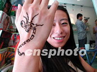 圖:京城美女鐘情毒蝎體繪 2001年11月11日 10:52 ![]() 一位北京小姐周末到尚吉體繪店請(qǐng)人在她手背繪上毒蝎圖案,據(jù)店員介紹這種毒蝎標(biāo)志在京城時(shí)尚美女中頗為流行。中新社圖 陳峰 攝 |