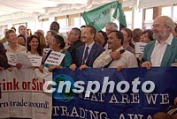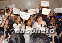 組圖:非政府組織成員示威 2001年11月12日 00:36 ![]() 正在多哈舉行的第四屆WTO部長會議會場外上,一些非政府組織成員十一日舉著標(biāo)語示威呼喊“民主、公正”等口號。中新社記者 錢興強(qiáng) 攝 ![]() 十一日,在第四屆WTO部長會議大廳走廊上,五十多名非政府組織成員舉著“不要壓力”的標(biāo)語進(jìn)行示威。中新社記者 錢興強(qiáng) 攝