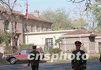 圖文:紐約空難后美國駐華大使館擴大警戒范圍 2001年11月13日 15:37 ![]() 北京警方13日在美國駐中國大使館前增加警力并擴大了警戒范圍,幾條通往使館門前的道路都設(shè)置了路障,禁止行人和車輛通行。美國美洲航空公司一架空中客車十二日在紐約墜毀,是否與恐怖主義襲擊有關(guān)仍有待進一步調(diào)查。中新社圖 武仲林 攝 ![]() 美國墜機事件后,中國軍方十三日對位于北京建國門外的美國使館區(qū)加強安保工作。“九一一”后一直實行戒嚴(yán)的美使館區(qū)內(nèi)秩序安定。中新社圖 劉殊瑾 攝