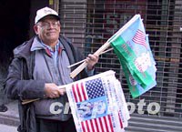 紐約世貿(mào)大樓廢墟前小販?zhǔn)燮,向“九一一”事件救難現(xiàn)場的英雄們致敬,也預(yù)祝美國民眾有個(gè)祥和愉快的圣誕節(jié)。中新社記者 徐德金 攝