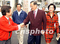 組圖:馬英九巡視臺(tái)北各街巷投票站 2001年12月01日 16:59 ![]() 國(guó)民黨籍的臺(tái)北市長(zhǎng)馬英九被稱為本次臺(tái)灣選舉的五大競(jìng)選天王(陳水扁、李登輝、連戰(zhàn)、宋楚瑜、馬英九),"小馬哥"清晨投票后趕到國(guó)民黨主席連戰(zhàn)的選區(qū)陪同連戰(zhàn)夫婦投票時(shí),受到連戰(zhàn)住區(qū)的里長(zhǎng)何信隆的歡迎。中新社記者 任晨鳴 攝 ![]() 國(guó)民黨籍的臺(tái)北市長(zhǎng)馬英九12月1日陪同連戰(zhàn)和陳水扁投票后到各街區(qū)投票站巡視,馬英九表示臺(tái)北市警方已經(jīng)做好防范不允許暴力活動(dòng)出現(xiàn)。中新社記者 任晨鳴 攝