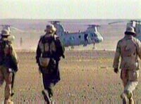 圖:美軍加強在坎大哈的軍事部署 2001年12月04日 10:50 ![]() 三名美國特種部隊士兵四日走向坎大哈南部美軍基地的直升飛機。美軍日前正加強在坎大哈的軍事部署,但仍沒有地面部隊直接參與攻打坎大哈的進攻。 |